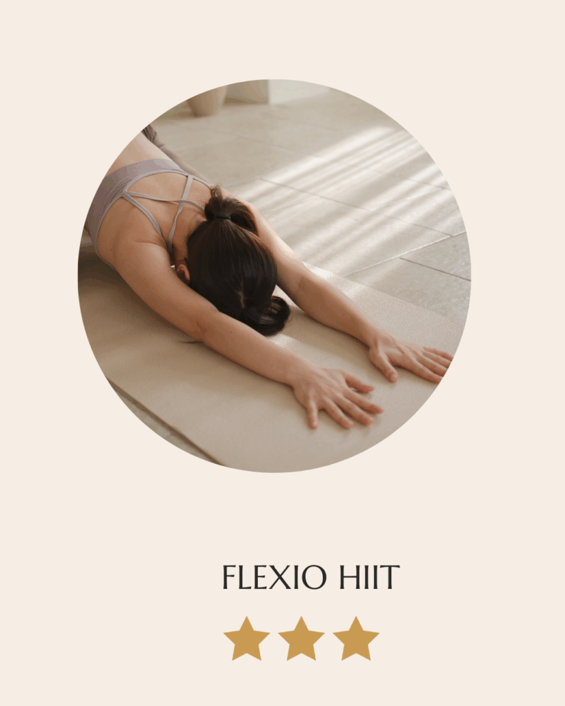 Flexio hiit – harjoitus on liikkuvuutta sekä voimaa kehittävä harjoitus. Tässä harjoituksessa tarvitset koordinaatiota, rytmitajua sekä muistia. Harjoituksella saat varmasti arkimurheet pois mielestäsi ja hymyn huuliin.