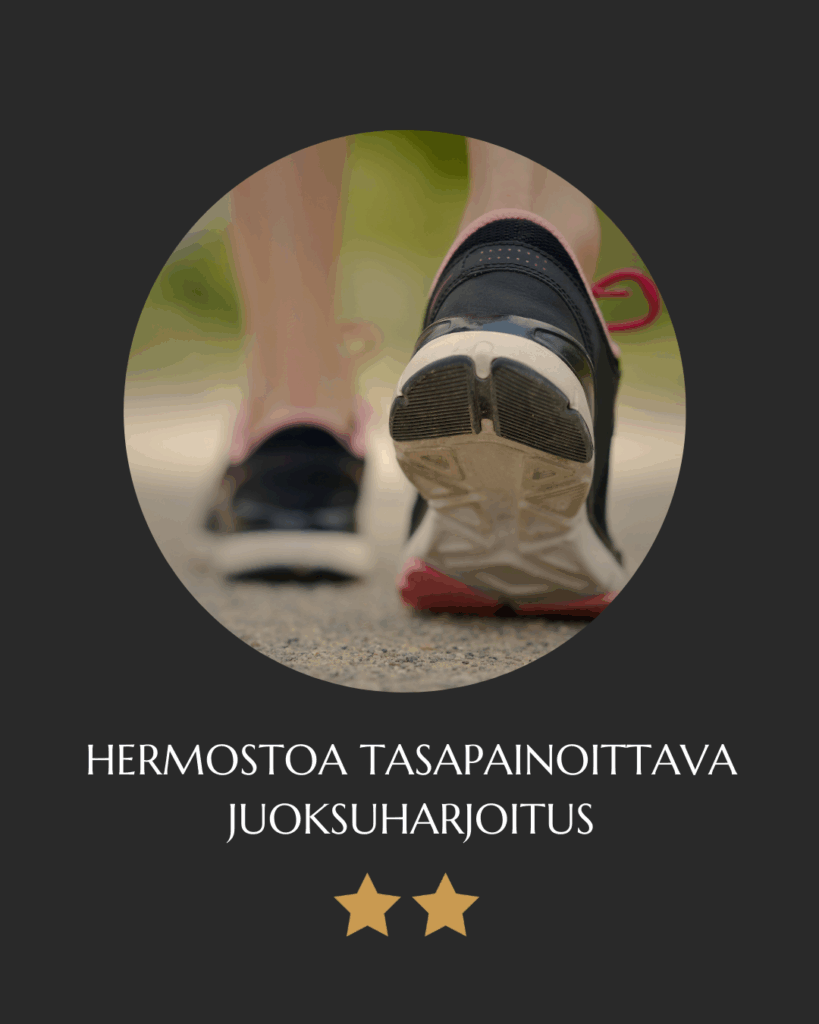 Juoksuharjoittelu sopii erityisen hyvin kuormittavampiinkin elämäntilanteisiin. Harjoitus tasapainoittaa autonomista hermostoa, parantaa unenlaatua sekä kehittää stressinsietokykyä.